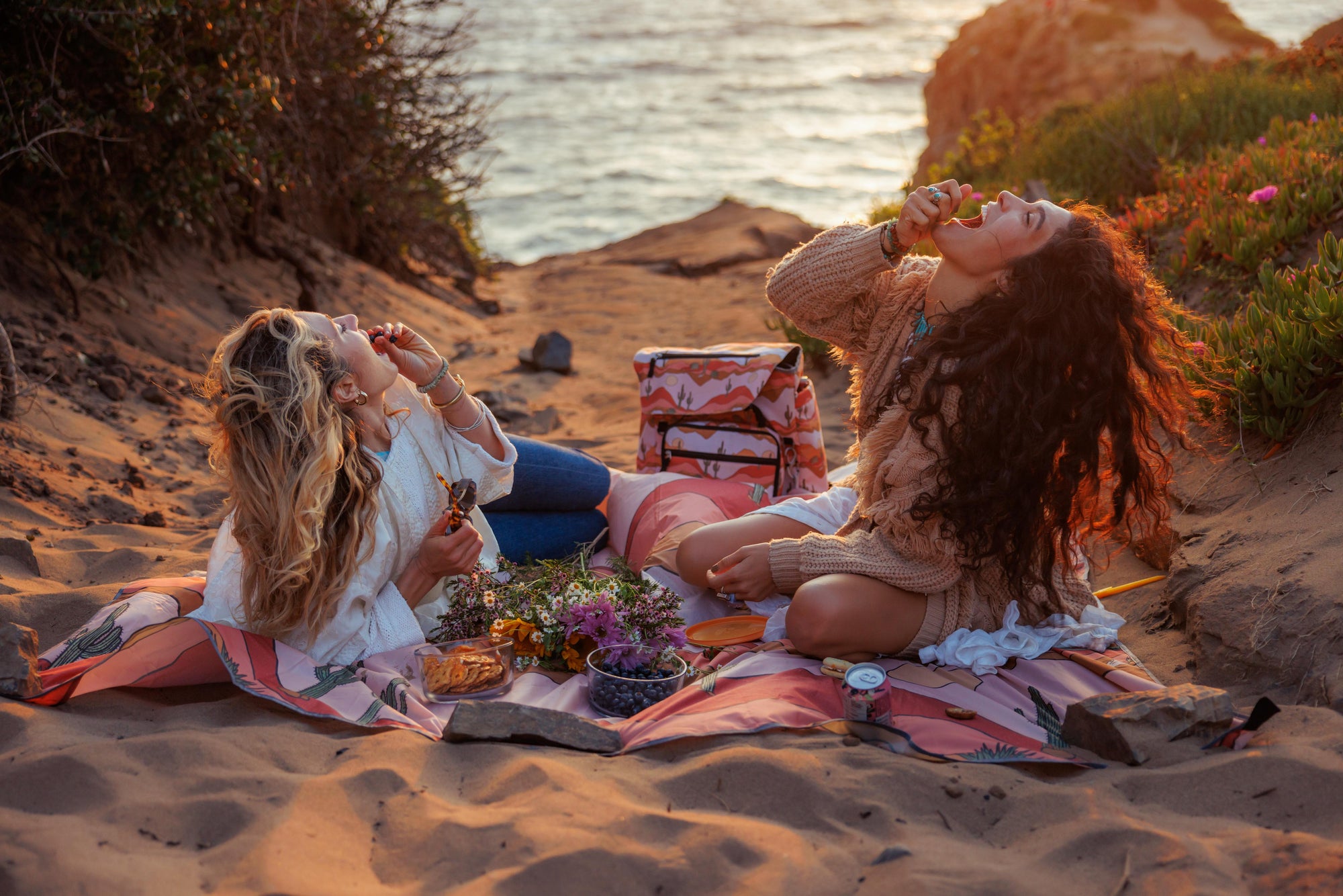 Unlike other brands that use basic aluminum foil insulation and single-use plastics, our set features advanced insulation technology and reusable, temperature-controlled stainless steel tumblers. Enjoy the luxury of a spacious, versatile picnic blanket designed for any terrain and high-quality accessories, including gold cutlery and enamel plates. Plus thoughtful upgrades like a place for your yoga mat and speaker! We really thought of everything so you don't have to.